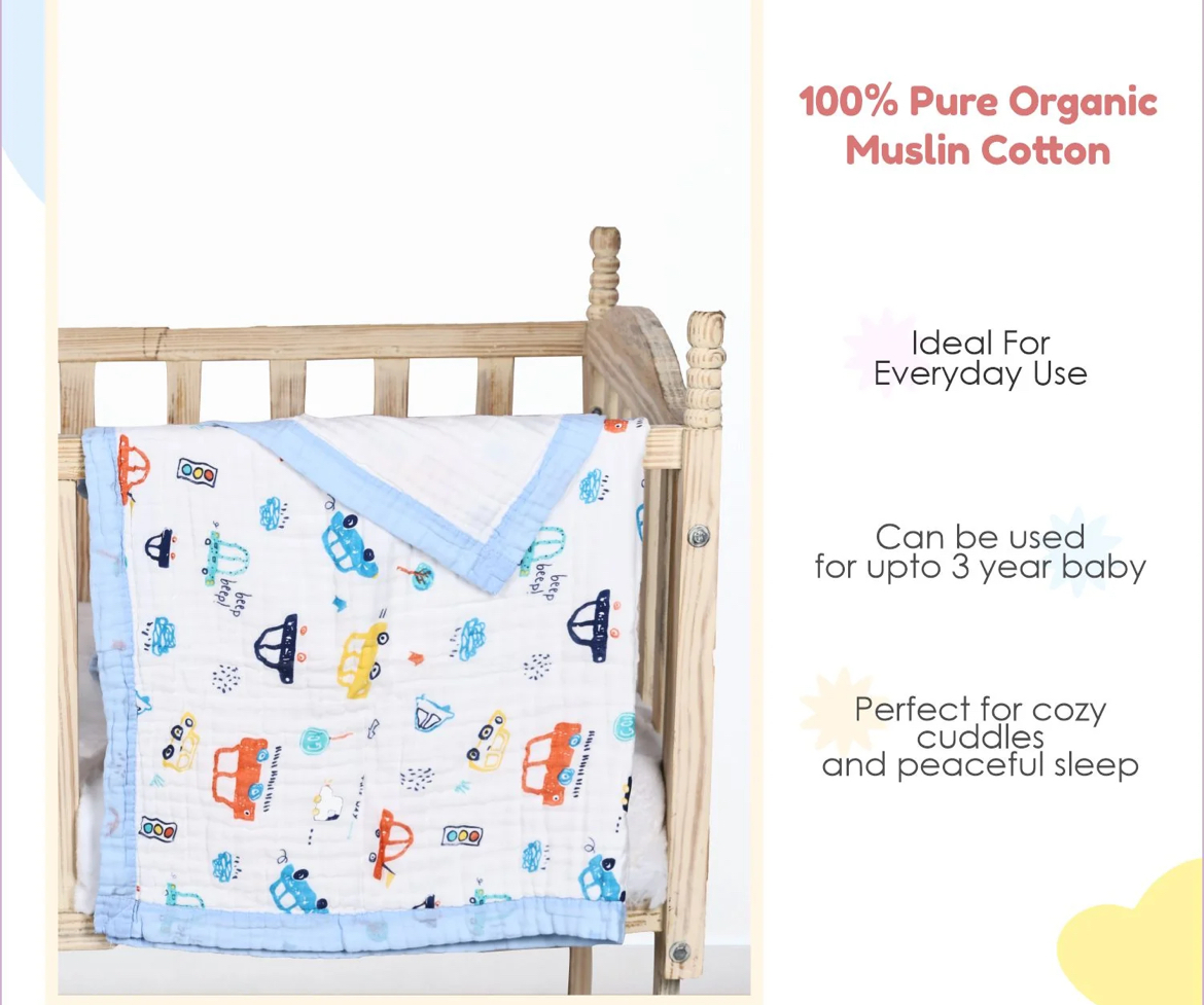 Baby 6 Layer Muslin Blanket | 100X100 CM | 0-3 Years | Car
