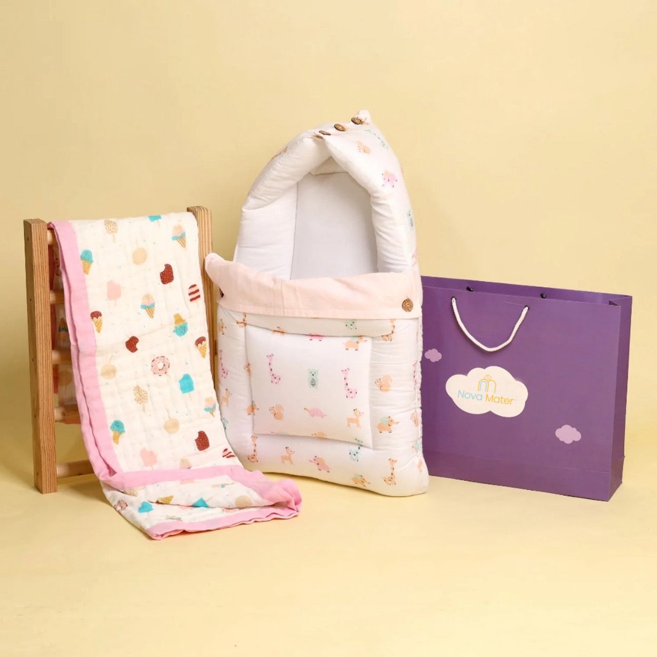 This Baby Bedding Set is the perfect newborn essential, thoughtfully designed to keep your little one cozy, safe, and comfortable through day naps and night sleep. The set includes a soft sleeping bag, a lightweight baby blanket, and a comfortable bedding base, making it ideal for cribs, bassinets, strollers, travel, and home use. Made from ultra-soft, breathable, and skin-friendly fabric, this newborn bedding kit ensures proper warmth without overheating—supporting safe sleep for infants. The adorable rabbit print adds a cute, gender-neutral charm perfect for gifting, hospital bag packing, and nursery décor. Easy to wash and long-lasting, this baby sleeping bag and blanket combo is crafted to provide gentle comfort, secure cushioning, and everyday practicality. A must-have baby bedding set for newborns and infants, loved by parents for its soft feel, premium finish, and safe-sleep design.
