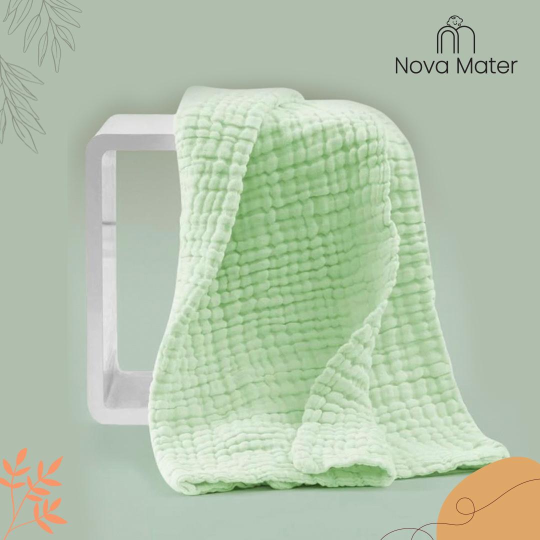 Baby Super Soft Absorbent Muslin 6 Layer wash Towel | 100X100 CM | 0-3 Years | Pack of 1| Green