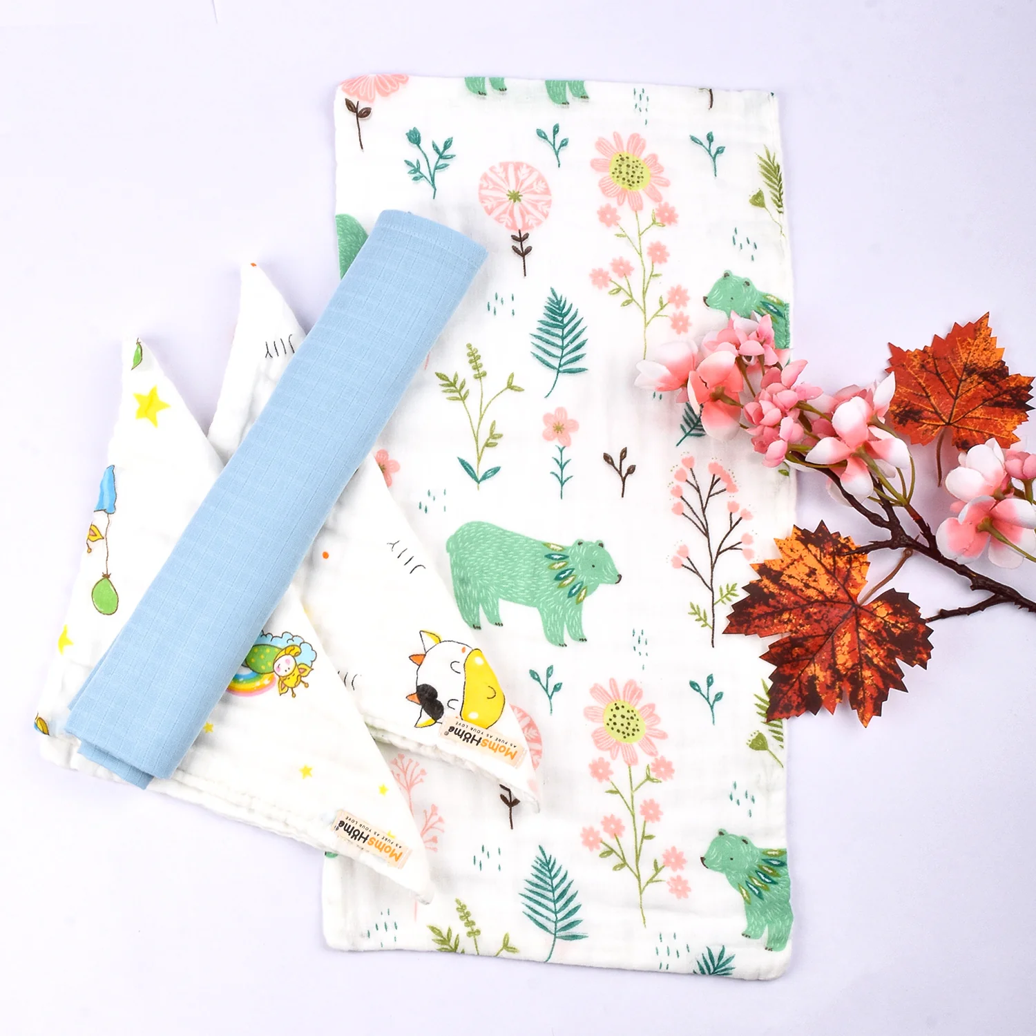 Baby Unisex Muslin Organic cotton 1 Square Langot, 2 Muslin Napkin, 1Burp Towel combo