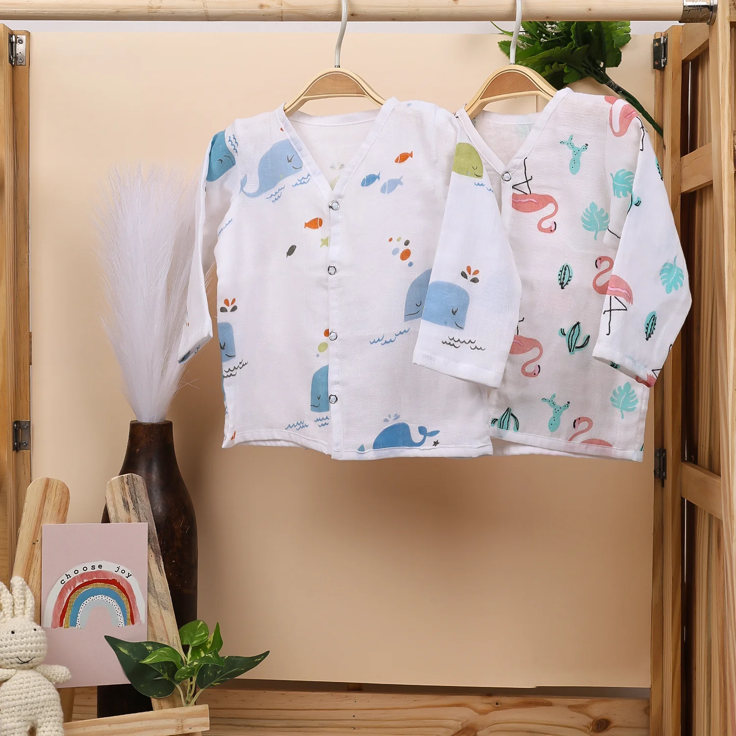 This Muslin Full Sleeves Jhabla set is made from Super Soft Breathable Muslin fabric. It’s the perfect first-ever clothing for your baby, providing a feather-like touch and comfort for their delicate skin. With its softness increasing with every wash, it’s perfect for daily wear or sleepwear.