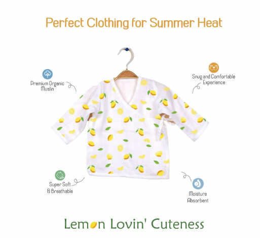 Baby Organic Cotton Muslin Front Open Kimono, Jhabla & Nappy | Lemon | Pack of 3