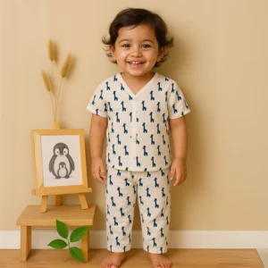 Wrap your little one in softness and comfort with our Organic Cotton Muslin Jhabla and Pant Set – thoughtfully crafted for newborn and toddler babies aged 0-6 months, 1-2 years, and 2-3 years. Made from 100% GOTS-certified organic cotton muslin, this half-sleeve baby jhabla and soft pajama set is gentle on delicate skin, breathable, and perfect for all-day wear.