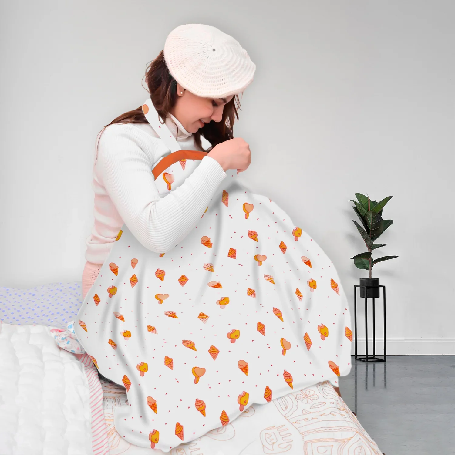 Organic Cotton Muslin Nursing Cover for Breastfeeding | Feeding Apron | 100×70 CM | Icecream